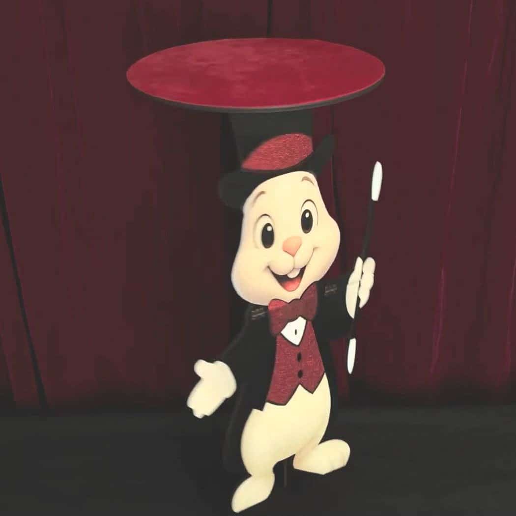 Dette smukke bord er en scenerekvisit, der er bærbart, praktisk og ser super godt ud. Dets iøjnefaldende design gør det perfekt til enhver form for forestilling, og børn elsker det. Det har en rund top, der giver plads til magiske rekvisitter og er stabilt til holde de store rekvisitter, som en produktionskasse, Square Circle osv.