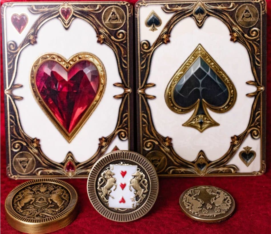 Med ringen får du også et af de mest overdådige sæt spillekort, der nogensinde er skabt. Noble 52 kortene,der er forgyldt og præget med 24 karat guld, kan kun gives af kongen selv. Hvert hof-kort hylder de arthurianske rødder i Noble 52 og forestiller et af dets oprindelige legendariske medlemmer.